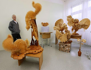 Sergei Bobkov bir heykeltraş ve ahşap oyma sanatcısı.2,3 cm uzunlugundaki sedir sopası ve agacı kullanarak eserlerini ortaya koyuyor..Sergei çalışmalarına başlamadan önce yapacagı hayvanın anatomisini uzun süre inceliyor ve yaptıgı çalışmalar 6 aylık bir çalışmanın sonucu.Kürk ve tüy detayını ayrıntılı bir şekilde çalışan Sergei çalışmaları için verilen para tekliflerini geri çeviriyor.