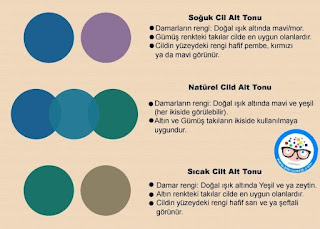 Hangi ikili yüzünüze renk verip sağlıklı bir görüntü verdi ise o renkler sayesinde cilt alt tonunuzu öğrenebilirsiniz.Kırmızı ve sarı size daha çok yakıştıysa sıcak alt ton, mavi ve mor daha iyi durdu ve beni sağlıklı gösterdi derseniz o zaman soğuk alt tona sahipsiniz demektir.